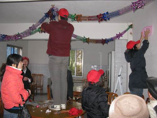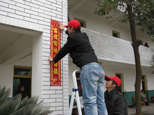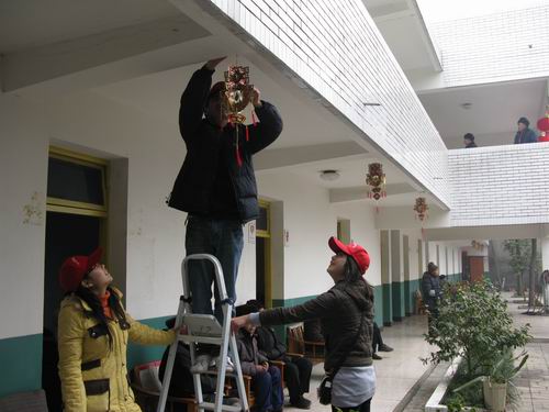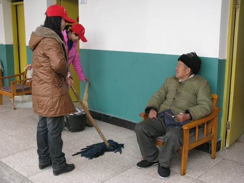 早上九点,同学们排着整齐的队伍,迈着整齐的步伐,把用爱心聚集起的温暖带到老人的身边。步入敬老院,大家在老师的安排下,分工合作,有条不紊地给老人们打扫房屋和清理院落,为老人整理内务、同他们促膝交谈,使得平日里十分安静的敬老院一下子热闹起来。与此同时,同学们还在敬老院的墙上挂起大红的灯笼,将充满新春祝福吉祥的对联、喜庆的福字和精美的剪纸贴在门窗上,此时整个敬老院洋溢起浓浓的过年气氛。随后,我们的队员们又将一个个代表美好祝福之意的金桔和糖果等送到老们人手中。队员们的一声声问候,一句句祝福,赢得老人和旁边工作人员们的“啧啧”赞叹,在寒冷的冬日里给老人们带来了春天般的温暖。老人们直夸孩子们懂事,期间还有部分老人,自发、热情地加入了同学们的活动中。