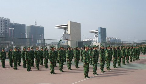 整齐的着装,抖擞的精神,伴着春日的暖阳,09年2月21日我院08级1100余名新生开始了为期一周的军训活动。本次军训在我校新建成的标准化田径运动场和篮球场进行,同学们怀着对军营生活的向往,对部队战士的敬仰,都非常珍惜此次军训机会。他们积极参与到各个项目的训练中,立正、稍息、齐步走、解散、集合等预定训练科目在部队教官严格的训练下,经过同学们的认真练习,两三天的训练已初见成效。同学们的精神面貌焕然一新,训练场上呈现出的是一丛丛精神饱满、步伐矫健、声音洪亮的训练方队。尽管春天的阳光那样明媚,但下午两、三点的太阳直射在同学们的脸上依然会有灼伤感,平常没有经历过这样高强度的严格训练,有的同学已经感觉到疲惫甚至病倒,但两天的军训生活已经使大家充满了强烈的集体荣誉感,病倒的同学不愿放弃、不甘心落后,凭借着顽强的意志,在身体稍有好转的情况下便坚持训练。同学们正用自己的毅力和决心演绎着80、90后大学生的时代风貌和爱国情怀,为我们的校园里呈现出了一道道靓丽的绿色风景线。此刻,军训仍然如火如荼地进行着,相信在后面的训练科目中,同学们会更加努力,用军人钢铁般的毅力锻造自己。