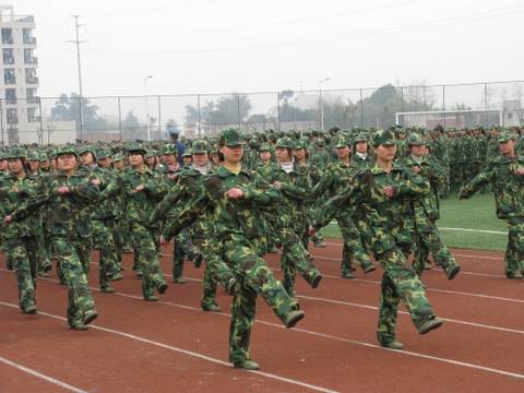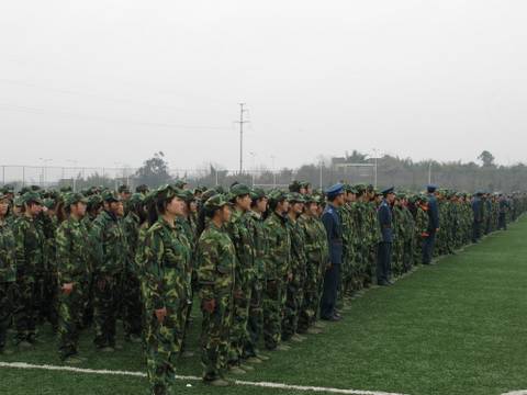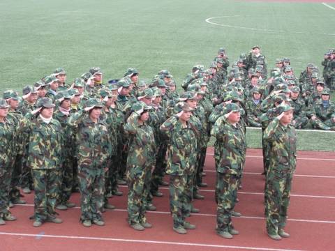 图三:同学们在教官的带领下整队待命