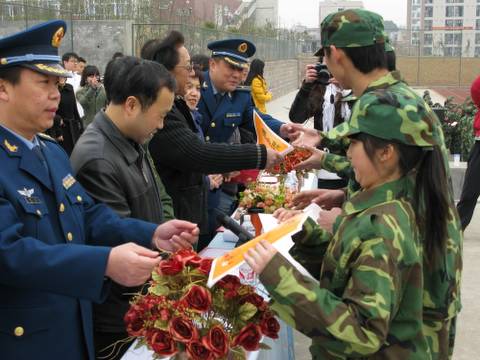 2月27日上午,我院2008级新生军训汇报表演在学院运动场顺利举行。学院院长、党委副书记李建川、副院长刘斌、艺术顾问马一平,95788部队站长田立、四川省军区军训办公室副主任吴豪、军训组组长许果出席了汇报表演。出席汇报表演的还有学校各部门负责人和各系辅导员、教师。四川省军区军训办公室副主任吴豪主持了军训汇报表演。