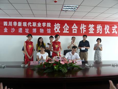 为进一步加强校企合作,发挥企业资源优势,培养社会需求人才,6月24日上午,四川华新现代职业学院与成都博物院金沙遗址博物馆校企合作培养人才签约仪式在我院623会议室举行。