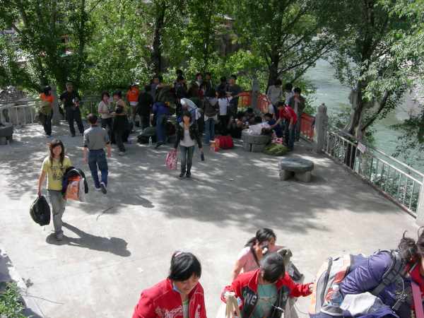24日,我们迎着朝阳往成都方向开进。由于经历了翻越夹金山和梦笔山的惊险,我们将路线进行调整,改由金川至丹巴,沿着大渡河,绕道康定姑咱、泸定前往成都。这是一条相对安全的路线,但比我们来时的路长了200多公里,路途依然艰险。由于上游修水电站的缘故,路面坑坑洼洼,我们的车队在颠簸中前行,很多学生都有晕车的反应,部分学生还发生了呕吐,但我们都克服了,因为这一点点小困难和我们学生所受的地震灾害相比,显得是那么的容易对付。中午时分,我们到达了泸定县。匆匆吃了午饭,我们又出发了,翻越著名的二郎山,我们于下午六时许顺利到达成都。