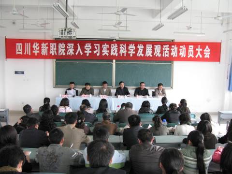 2009年4月3日下午,四川华新现代职业学院深入学习实践科学发展观活动动员大会在学院113教室召开。全院党员干部、民主党派和师生代表共60余人参加了大会,四川电大党委副书记、四川电大深入学习实践科学发展观活动指导检查组组长李毅及成员莅临会议并对学习实践活动提出了要求。会议由学院院长、党委副书记、学习实践活动领导小组组长李建川主持。
