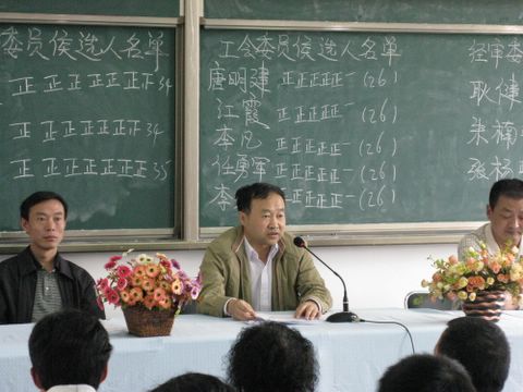 院长、党委副书记李建川到会并做了重要讲话。李院长首先宣读了来自四川电大工会的贺信,并向当选的首届工会委员和经审委员表示了热烈的祝贺,他希望工会全体委员要勇担责任,勇于奉献,积极配合,广泛团结广大会员努力工作,为开创我院工会工作新局面,为推进和谐学院建设作出应有的贡献。