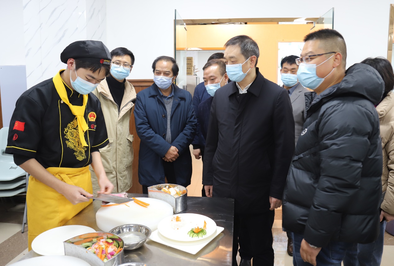 图四 杨俊辉到烹饪实训中心调研