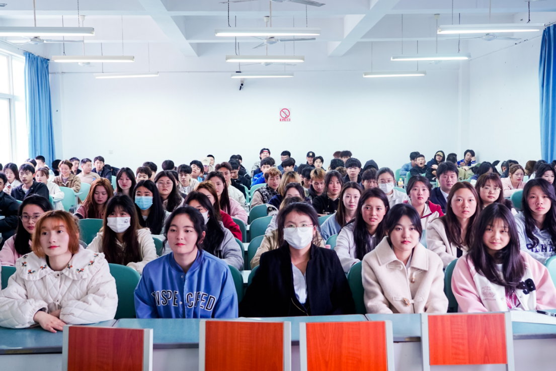 学院各部门主要负责人、教师代表、学生代表在主会场参加,其他学生在分会场聆听。