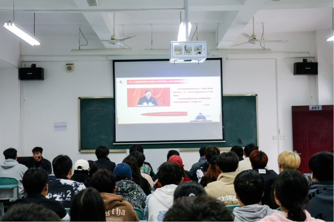 “以技能报国,让青春绽彩,在中国式职业教育现代化的火热实践中用奋斗成就最好的自己,用实际行动让宝贵的青春在新时代新征程上绽放绚丽之花。”课上,杨俊辉以《知行合一、未来可期,在奋斗中成就最好的自己》为题,带领全校同学再次学习党的二十大精神,在学习理解习近平总书记关于职业教育相关论述和思想的基础上,深刻分析当前职业教育改革发展面临的良好局面,回顾了四川开放大学和华新学院的办学历史和办学成绩,围绕“厚德、励志、精技、笃行”的校训,聚焦典范榜样进行讲授,激励同学们用奋斗成就最好的自己。