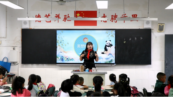 签约仪式结束之后,学院领导及师生走入马湖小学的课堂,为孩子们开展主题教育课堂活动。在二三年级的课堂上,基础教育部黄剑琪、李姝瑾老师为大家带来了《非遗中华面塑巧手绘》主题课程。黄剑琪首先讲授了中华面塑知识,接着带领孩子进行互动交流、通过超轻黏土进行手工制作,体验非遗传承的乐趣。整节课寓教于乐、润物无声,既让孩子们领略了中华饮食文化的博大精深,也激发了孩子们对于中国传统文化的热爱之情,孩子们收获颇多。