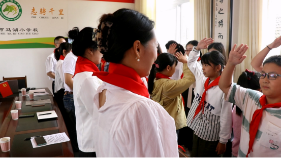 一张张朝气蓬勃的脸庞,一双双灵动稚气的眼睛,马湖小学的孩子们热情地为学院领导及师生戴上了鲜艳的红领巾,这个温馨有爱的时刻让师生与孩子们之间搭建起了心灵的桥梁,我院师生与孩子们互敬了队礼。
