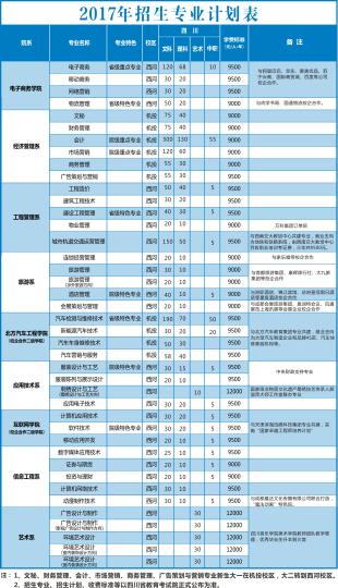 2017年招生专业计划表