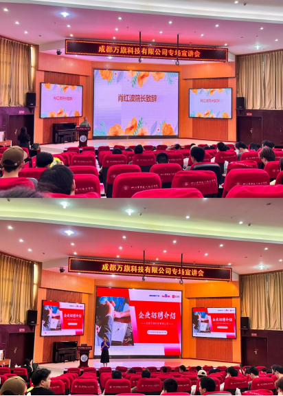5月31日下午,成都万旗科技有限公司人事经理李雪一行两人前来数字经济学院开展实习生宣讲活动,受到院长肖红波的热情接待。