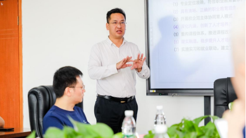 周勇对项目专家组的到来表示热烈欢迎,他向专家组介绍了华新学院的办学历史和办学特色,并详细讲解了学校校企深度融合模式的优势以及取得的成果。周勇表示,德国博世应用型和技术技能型人才培养合作试点项目与华新学院的办学理念高度契合,希望双方能够加强合作,提高办学品质,促进高质量人才培养与就业,培养更多应用型创新人才服务当地经济社会发展。