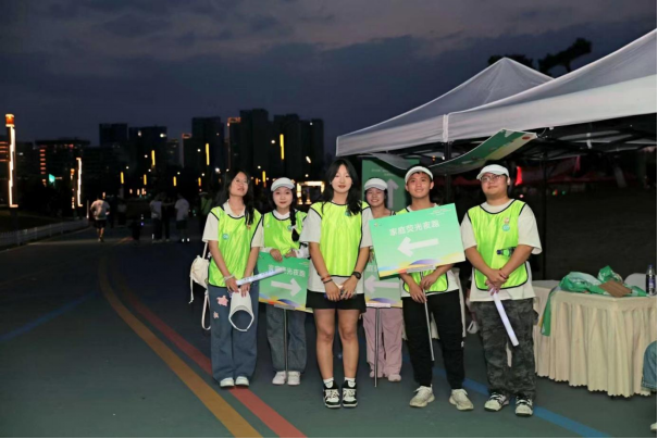 5月24日傍晚,荧光夜跑即将开始,同学们到各自点位确认安排相应的服务工作,为比赛的开始做准备。大家手持指引牌在参赛选手必经之路上等待他们的到来。在终点,志愿者们为参赛者们提供存取包服务与饮水,保障活动的后勤工作。在活动开展的过程中,同学们提供专业的指导与安全保障,为活动贡献自己的力量。