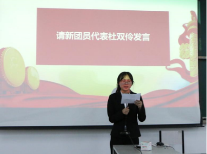 新团员代表杜双伶在发言中说,作为中国共产主义背年团的新成员,我们一定要遵照团的章程,执行团的决议,服从团的组织纪律和团组织布置的工作任务,不折不扣履行团员义务。我们还要遵纪守法,遵守学校各项规章制度,在努力学习政治理论的同时,我们还要刻苦学习科学文化知识,用实际行动实践自己的入团誓言。