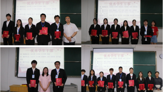 在优秀学生干部颁奖仪式上,张华、罗能铮和各位辅导员老师为张佳琪、王欣雨、江芷姗、裴璇等54名获奖的同学颁奖。