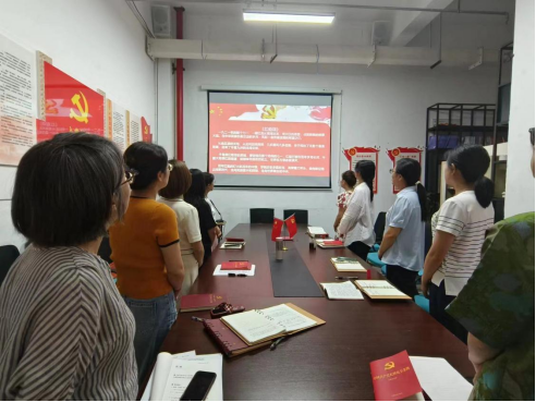 接着,全体党员老师们围绕党的历史、党的精神等主题进行了座谈讨论,老师们踊跃发言,分享了自己学习的心得和体会。纷纷表示国家富强,民族团结,全国呈现出一片欣欣向荣的景象,作为我们党员老师应该立足本职岗位,爱岗敬业,爱生如子,踏实肯干,做好自己的工作,为国家出一份力。最后,在“七一”建党节之际,全体党员老师们在书记的带领下重温入党誓词,庄严地在党旗下宣誓。