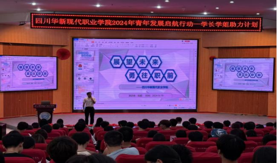 为深入开展“青年发展启航行动”学长学姐助力计划,引导青年学生找准自身定位,设定合理预期、做好职业规划,树立积极理性、踏实奋斗的择业观、就业观,进一步助力青年学生在学业、生活和职业发展等方面实现新的突破,9月19日,华新学院团委组织开展“职”引未来 筑梦启航专题活动,特邀请到“就业帮团团”姚毅老师来到我院给学生做主题讲座,院团委副书记伍凤姣、教师刘畅及近四百余名华新学子参加本次活动。