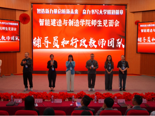 随后,智造学院领导班子成员与新生见面,并由吉力此且、黄彬彬、尹镜如三位领导分别向到会新生和企业代表介绍学院智能建造专业群、智能制造专业群和辅导员行政三个教师团队,充分展示了学院强大的师资力量和综合素质能力。
