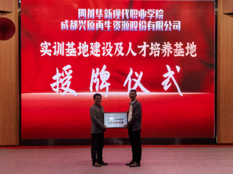 最后,为深入学习贯彻习近平总书记在党的二十大报告中关于深化产教融合、校企合作的重要讲话精神,继续深化校企合作的力度,积极创新育人模式,学院与成都兴原再生资源股份有限公司举行了校企合作签约仪式,同时为双方合作授牌。