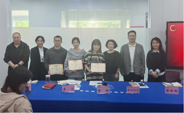 会议最后一项,进行智能建造与制造学院2024年辅导员素质能力大赛颁奖仪式,由华新学院翁艳副院长为获奖的三位辅导员颁奖并合影留念。