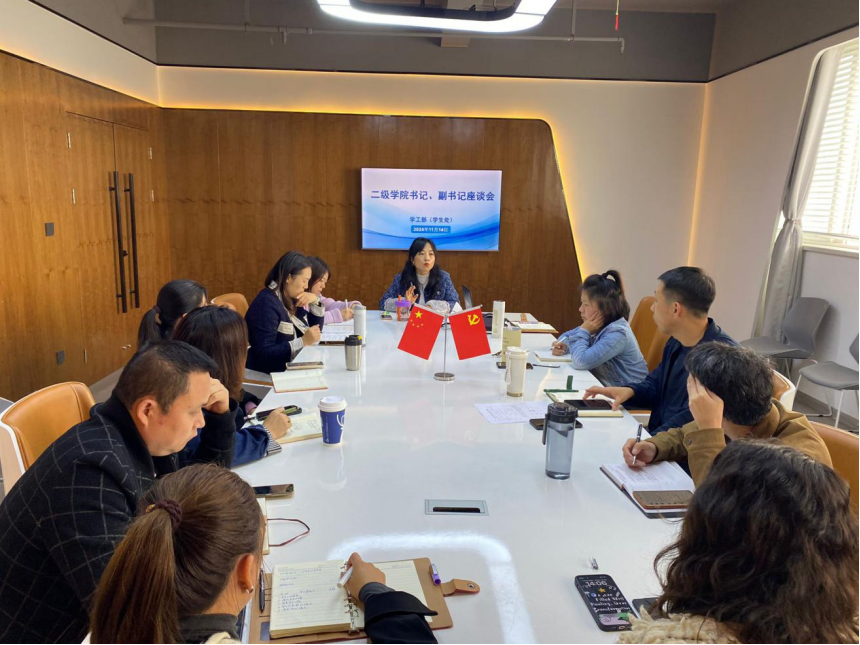 为持续深入学习贯彻中共中央办公厅印发的《关于在全党大兴调查研究的工作方案》,11月14日下午,学工部召开二级学院书记、副书记调研座谈会。座谈会由学工部部长任燕主持,学工部副部长彭娟、学工部副部长任勇军、各二级学院书记、副书记参加会议。
