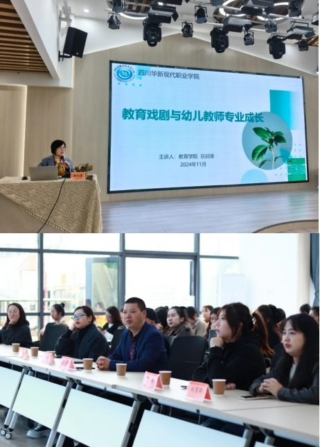 观摩课后,教育学院院长岳训涛为与会老师们进行了《儿童戏剧与幼儿教师专业发展》主题分享,内容涵盖教育戏剧对幼儿发展的意义、教育戏剧与教师专业成长等方面。