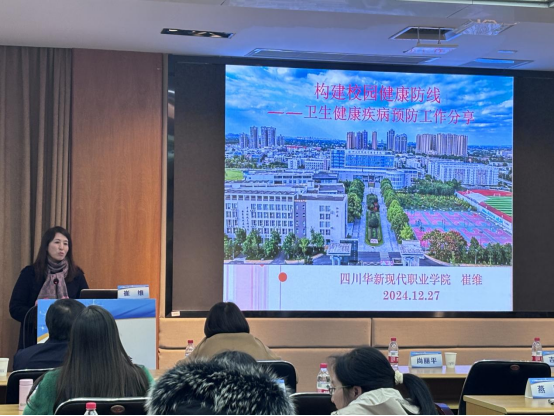 会上,医护康养学院卫生所管理岗教师崔维作了题为《构建校园健康防线——卫生健康疾病预防工作》的报告。她详细介绍了华新学院在卫生管理、健康宣教等方面的具体举措和取得的成效,展示了学院在保障学生健康方面的积极探索和实践经验。报告得到了与会专家的高度评价,充分展现了学院在卫生保健工作领域的专业实力和良好形象。