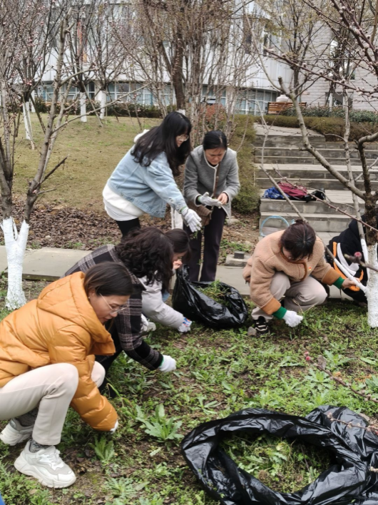 在活动过程中,党员们还积极向过往的师生宣传爱护绿化的重要性,鼓励大家共同参与绿化养护的行动中来。不少师生受到感染,也纷纷表示要加入到这项有意义的活动中。经过努力,校园内的桃花林得到了精心的呵护,呈现出更加生机勃勃的景象。看着自己动手拔草、浇水的成果,党员们心中充满了成就感和自豪感。