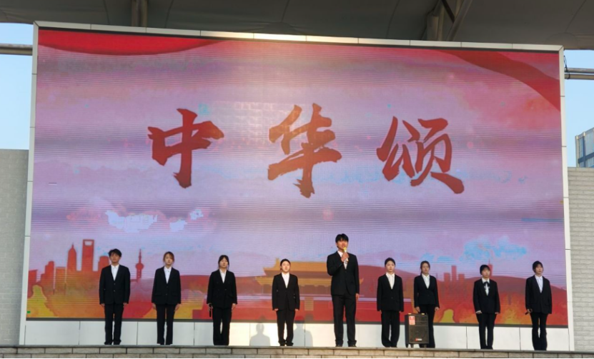 朗诵尾声,全体师生齐诵“向东方走,中华是我们的家”,将仪式推向情感高潮。