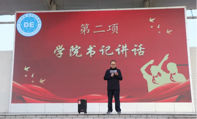 4月7日,清明节后的第一个星期一清晨,数字经济学院教师党员和大一大二学生齐聚运动场,举行了庄严的升旗仪式。仪式秉承“铭记先烈精神,践行职教担当”的主线,将红色信仰与技能报国融入育人实践,诠释职业教育与爱国主义的深度融合。