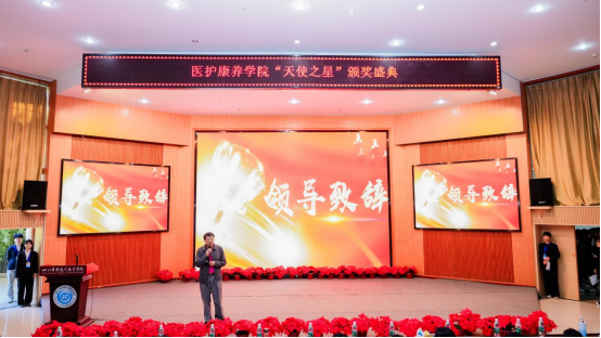 立德树人树标杆凝聚奋进力量。“天使之星”颁奖盛典在庄严的国歌声中拉开帷幕。医护康养学院院长伍小飞在致辞中表示,学院始终坚持以立德树人为根本任务,以培养“德技并修、仁心仁术”的医护康养人才为目标。他勉励全体学生以获奖者为榜样,锤炼专业本领,厚植家国情怀,在服务健康中国建设的实践中贡献青春力量。