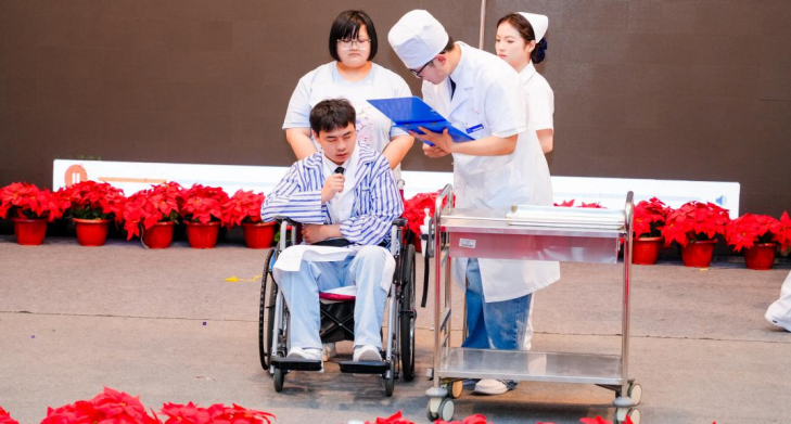 决赛现场,各参赛队伍依次登场。同学们身着整洁的护士服,头戴燕帽,以端庄的仪态、优雅的举止,展示了护理工作中的各种礼仪规范,包括站姿、坐姿、行走、推车、端治疗盘等基本动作,以及与患者沟通交流时的语言、表情和肢体语言。在模拟病房工作、门急诊服务等场景中,同学们不仅展现出扎实的专业知识和技能,更通过细腻的表演,将护理人员对患者的关爱与耐心体现得淋漓尽致。有的参赛队还别出心裁地融入了情景剧、舞蹈、手语等元素,使整个表演更加生动丰富,赢得了现场观众的阵阵掌声。