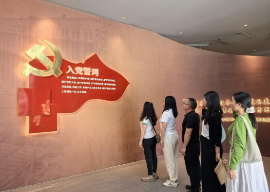 走进“宏明记忆”党性教育示范基地,同志们举起右拳,重温入党誓词,铮铮誓言久久回荡在场馆内。