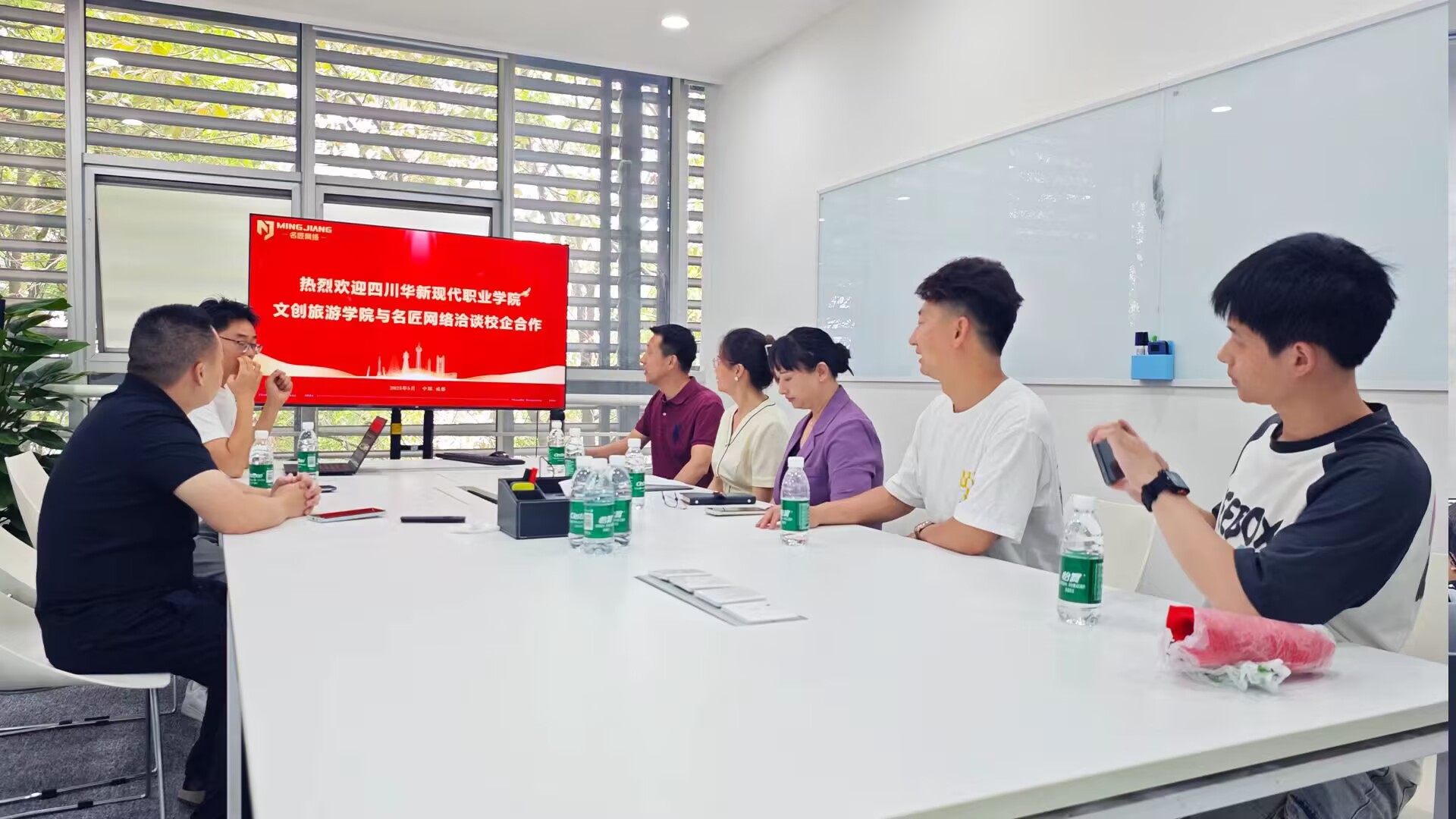 5月21日,四川华新现代职业学院文创旅游学院院长张丽妍、书记陈丽玉、副书记任勇军及游戏专业负责人齐乃庆一行,赴名匠网络科技有限公司成都分公司开展访企拓岗专项交流活动,旨在深化产教融合、校企合作,共同探索游戏行业人才培养新路径。