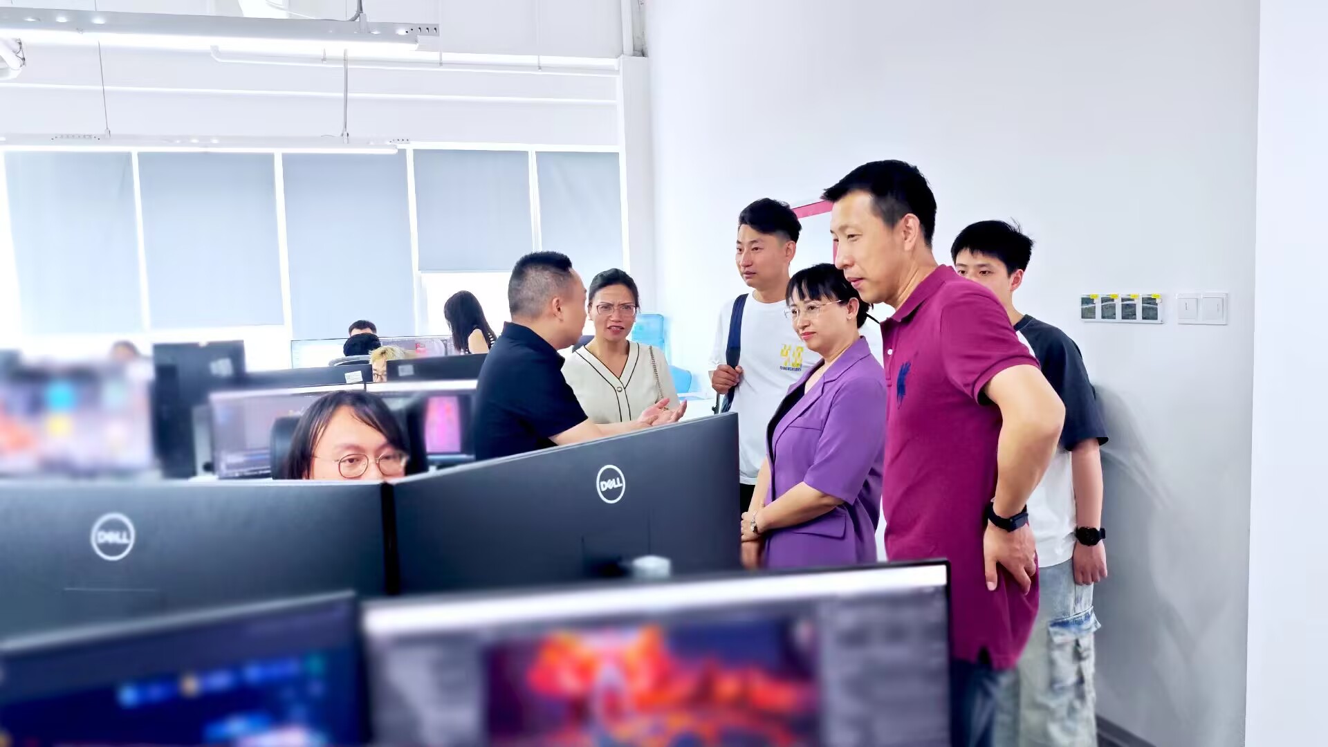在名匠网络成都分公司负责人杜宇的陪同下,学院领导一行参观了位于天府软件园C区5座3-5层的办公区。作为中国西部数字经济的核心地标,天府软件园汇聚了众多科技与文创企业,名匠网络凭借其在全国游戏行业人才外派领域的领先地位,成为园区内极具代表性的成长型企业。学院团队重点考察了企业的技术研发中心、项目管理部及员工实训基地,详细了解名匠网络在游戏开发、数字IP运营及人才孵化等方面的创新实践。