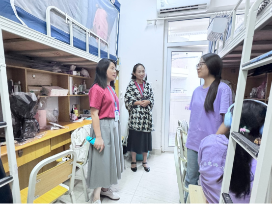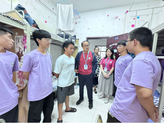 寝室是学生们生活、学习和交流的重要场所。为了关心刚进校的大一新生的成长和发展,帮助他们尽快适应大学生活、提升归属感,8月29日晚,智能建造与制造学院党支部书记张华、院长吉力此且带队走访新生宿舍,为2025级新生送去开学第一份温暖关怀。