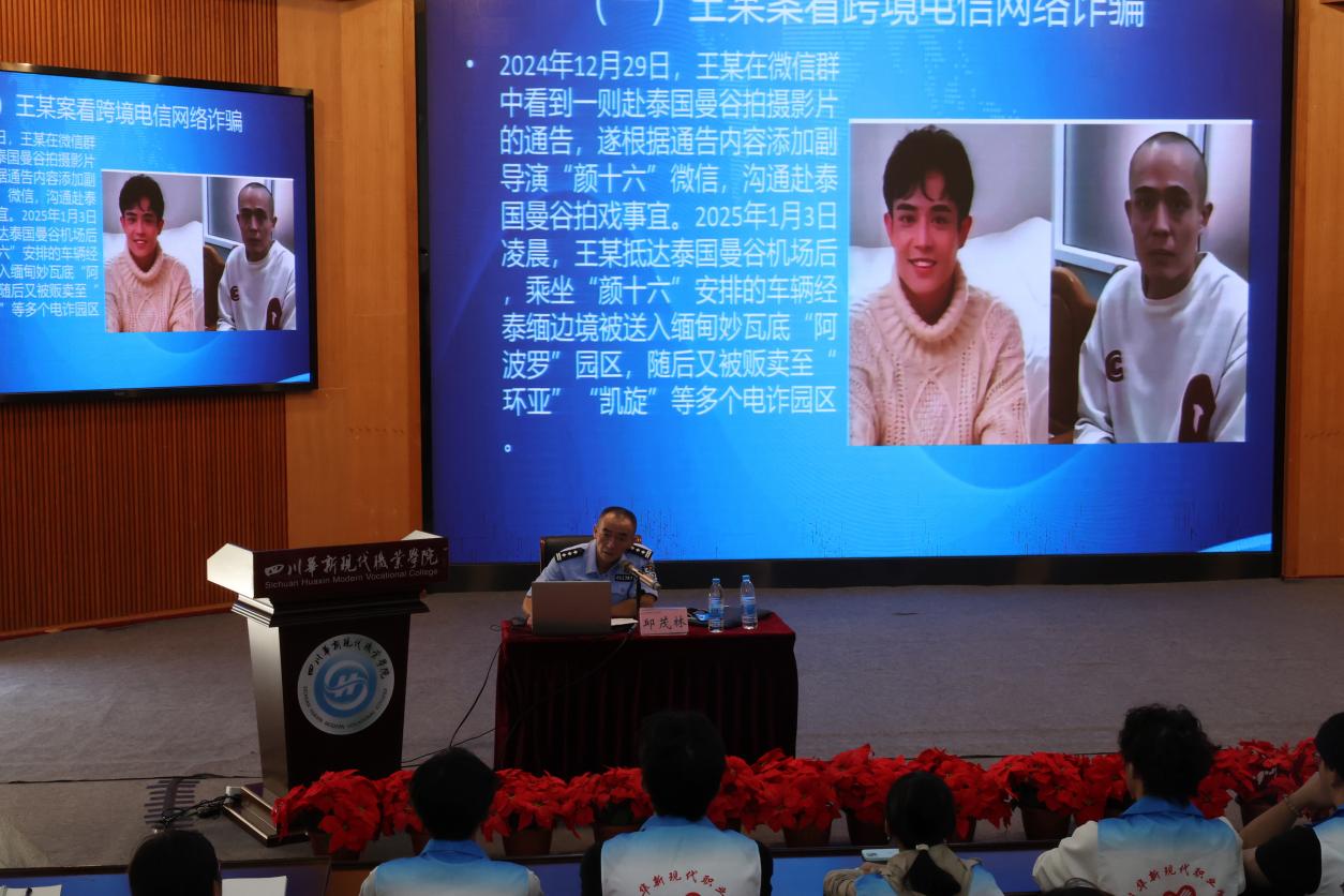 为深入贯彻落实国家关于打击治理电信网络诈骗犯罪的工作部署,切实提升大学生防范电信网络诈骗的意识与能力,筑牢校园安全防护屏障,9月25日上午,华新职院在学术报告厅开展“学生反诈先锋”专项培训。本次培训特别邀请成都市龙泉驿区公安分局反诈中心警官邱茂林主讲,各班级反诈宣传员及学院反诈先锋社全体成员共计200余人参加培训。