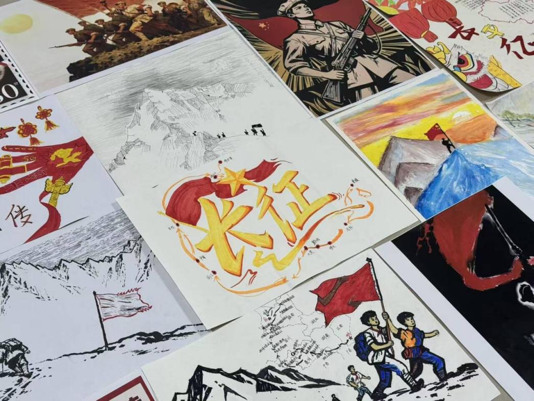 在此基础上,我们还组织师生开展了长征主题绘画活动。大家结合历史细节精心创作,每幅作品都承载对先烈的敬意,在协作与创作中深化对长征精神的理解,深刻感悟坚韧不拔的长征精神。