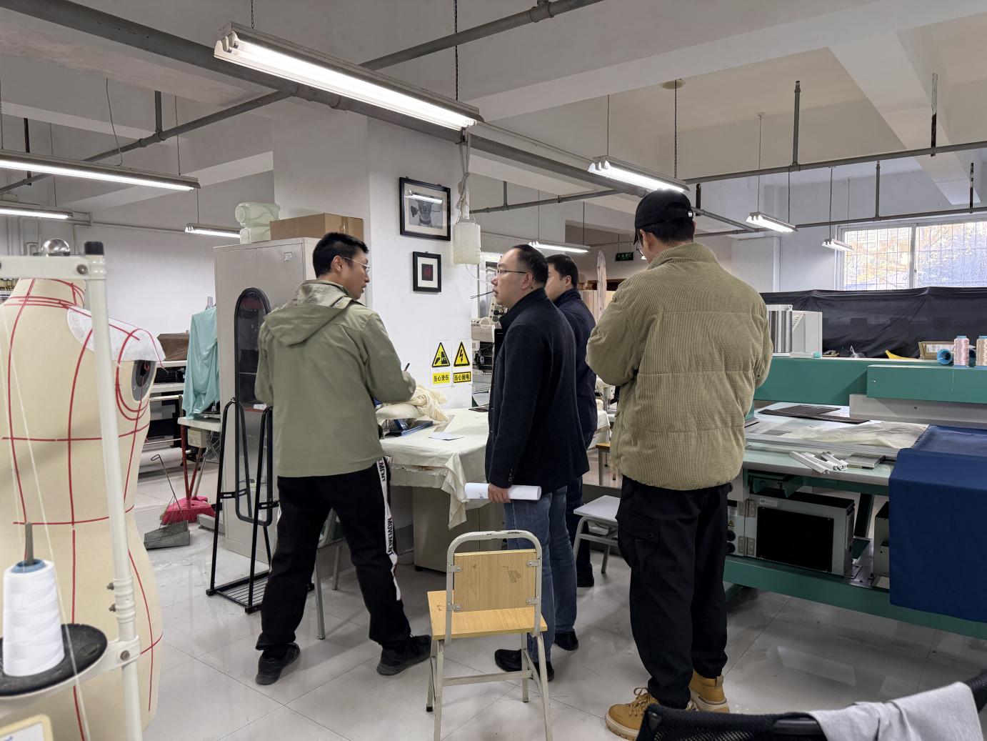 针对服装实训室,检查组聚焦缝纫设备安全防护、熨斗器使用注意事项、布料等易燃耗材存储方式,仔细翻阅设备日常维护记录,现场查看实训台布局合理性及消防器材配备完好情况,要求严格落实耗材分类存放、废弃物料(易燃物)及时清理等管理要求。