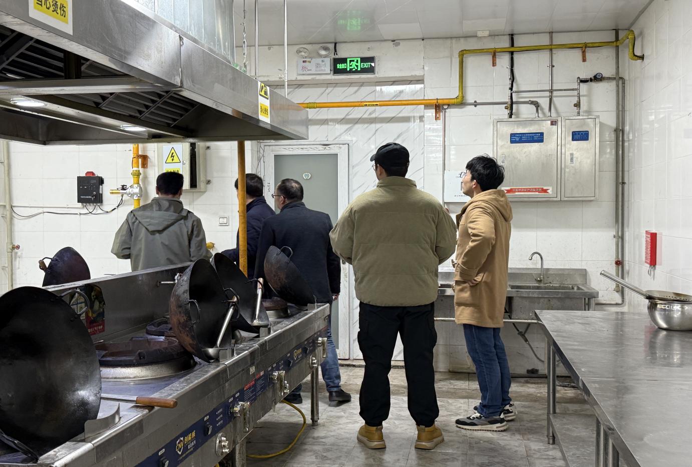 检查组严格遵循“抓重点、零死角、重实效”原则,结合不同实训场所的功能特性与安全风险点,进行精准化排查。在烹饪实训室,检查组重点核查了燃气管道密封性、灶具安全防护装置及食品安全卫生情况,详细询问食材存储规范、应急灭火设施配备及用气用电操作规程落实情况,对操作区域通风条件、油污清理等细节提出优化建议。