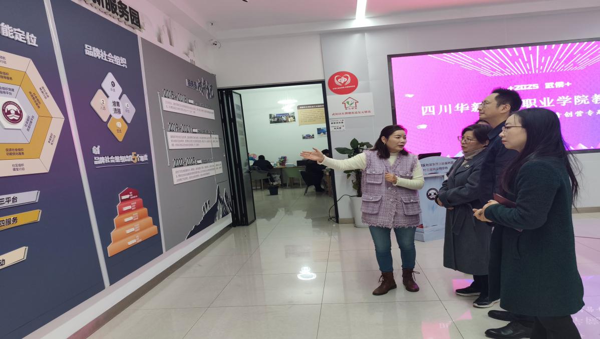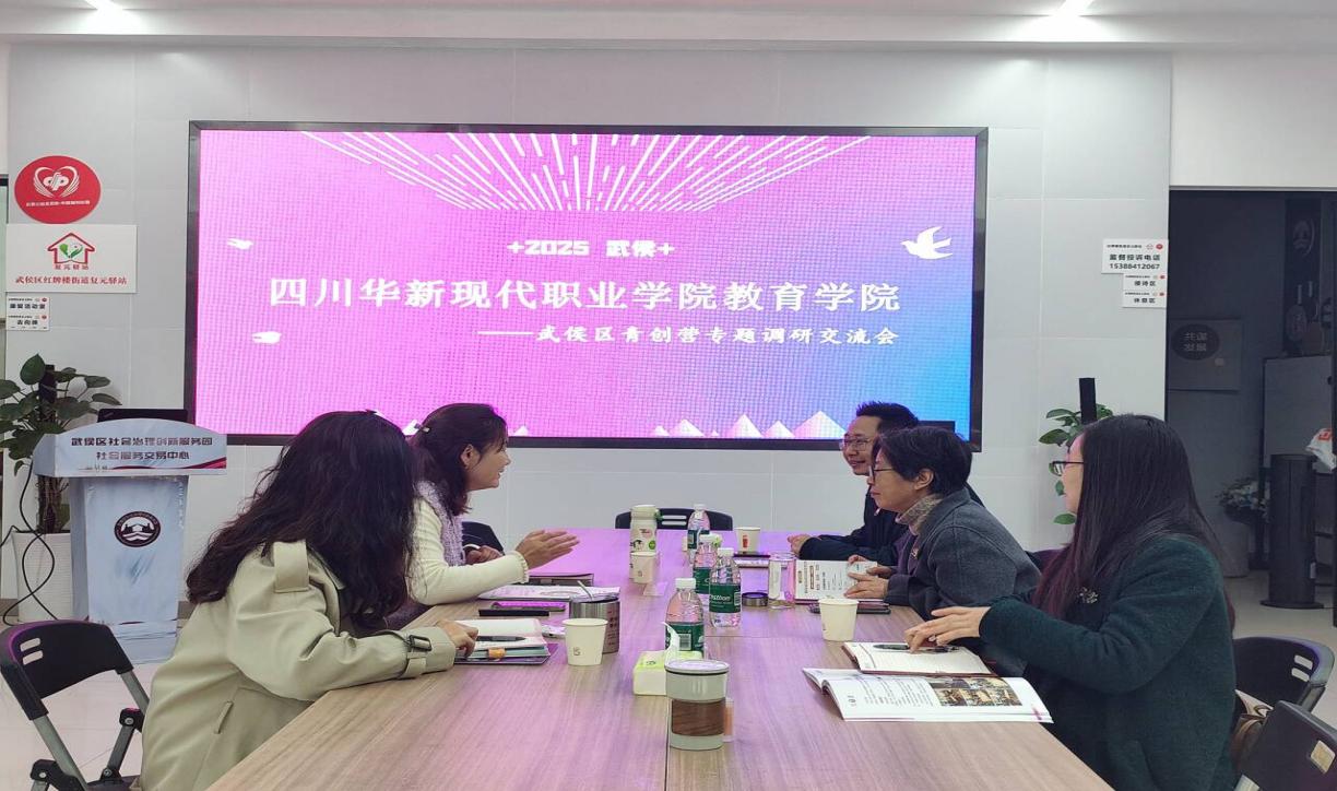 为深化产教融合、精准对接社会服务需求,探索校地协同育人新路径,11月26日,华新职院教育学院院长岳训涛、副院长林森带领团队赴武侯区社会治理创新服务园(以下简称“服务园”)开展专题调研,并与服务园平台负责人及核心团队举行合作交流座谈会,共同擘画高素质职业技能人才培养与区域社会治理创新协同发展蓝图。