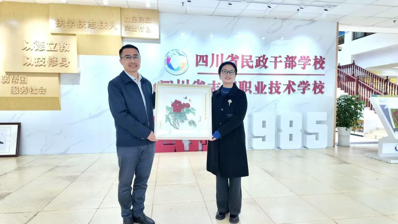为进一步贯彻落实《关于深化现代职业教育体系建设改革的意见》“推进不同层次职业教育纵向贯通,支持优质中等职业学校与高等职业学校联合开展五年一贯制办学”等要求,11月29日,华新职院副院长翁艳、教育学院院长岳训涛、招生就业处处长郑晓霞受邀参加四川省民政干部学校(四川省志翔职业技术学校)40周年校庆。翁艳代表学院向四川省志翔职业技术学校兰田校长赠送学生蜀绣作品作为贺礼。
