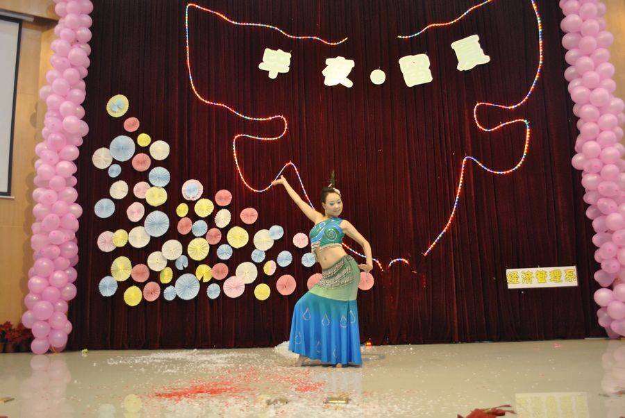 本次晚会共有13个节目,现场座无虚席,气氛异常热烈,节目形式丰富多样。开场舞《黑白腿》和少数民族同学表演的《七月火把节》立刻使现场气氛高涨,让我们感受到了青春的热情;反串小品《爱情故事》巧妙的讲述了一段情节曲折,更让人捧腹大笑的喜剧故事;《交谊舞》、《爵士舞》和《popping》三类不同风格的舞蹈更是为现场观众们带来了非一般的视觉享受;魔术表演更将全场气氛推向了最高潮,获得了全场如潮的掌声。期间,还有五次抽奖环节,老师们从发送短信到指定手机号码为“你最喜爱的节目”投票的观众中抽取幸运观众,再次点燃现场互动的热烈气氛。