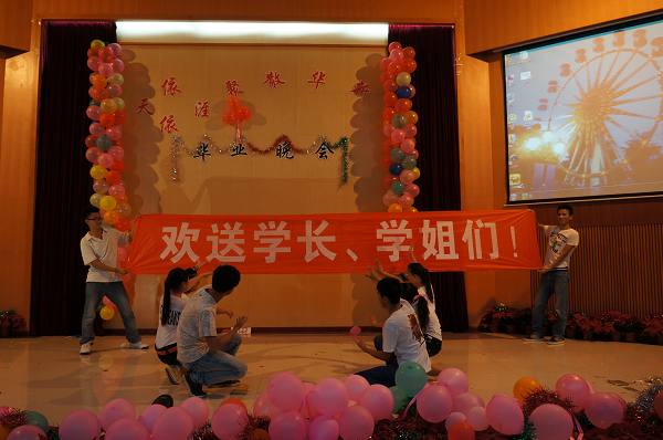 6月27日晚应用技术系在我院学术报告厅举行“依依天涯、聚散华新”毕业晚会,这不仅是一台展示该系学子青春魅力、也是一台为即将远行的10级同学们送上祝福的晚会。