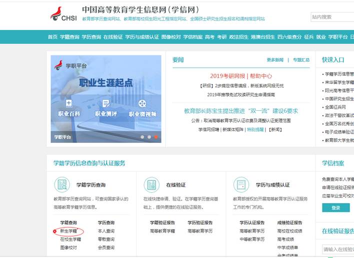 1、所有2018年入学新生登陆学信网(http://xjxl.chsi.com.cn/xscx.action )进入“新生查询”一项,按网站提示查询本人学籍信息。