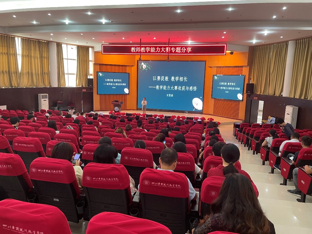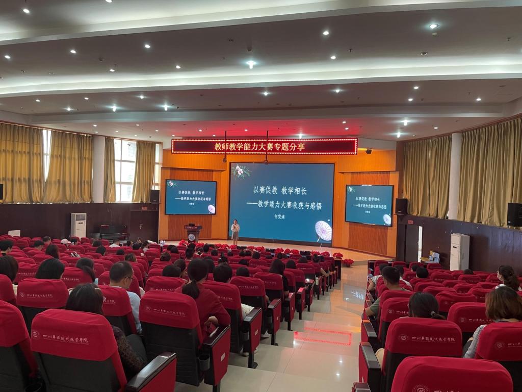 为全面贯彻党的教育方针,持续深化教师、教材、教法改革,扎实推进学院“双高”建设和高水平教师教学创新团队建设,提升教师教学能力和教学水平,助力学院教师积极备战省级教学能力大赛,2021年9月8日下午,学院邀请到了2018年全国职业院校技能大赛职业院校教学能力大赛一等奖获奖者、四川文化产业职业学院何雯娟老师在学院学术报告厅举办了教师教学能力大赛专题分享讲座。