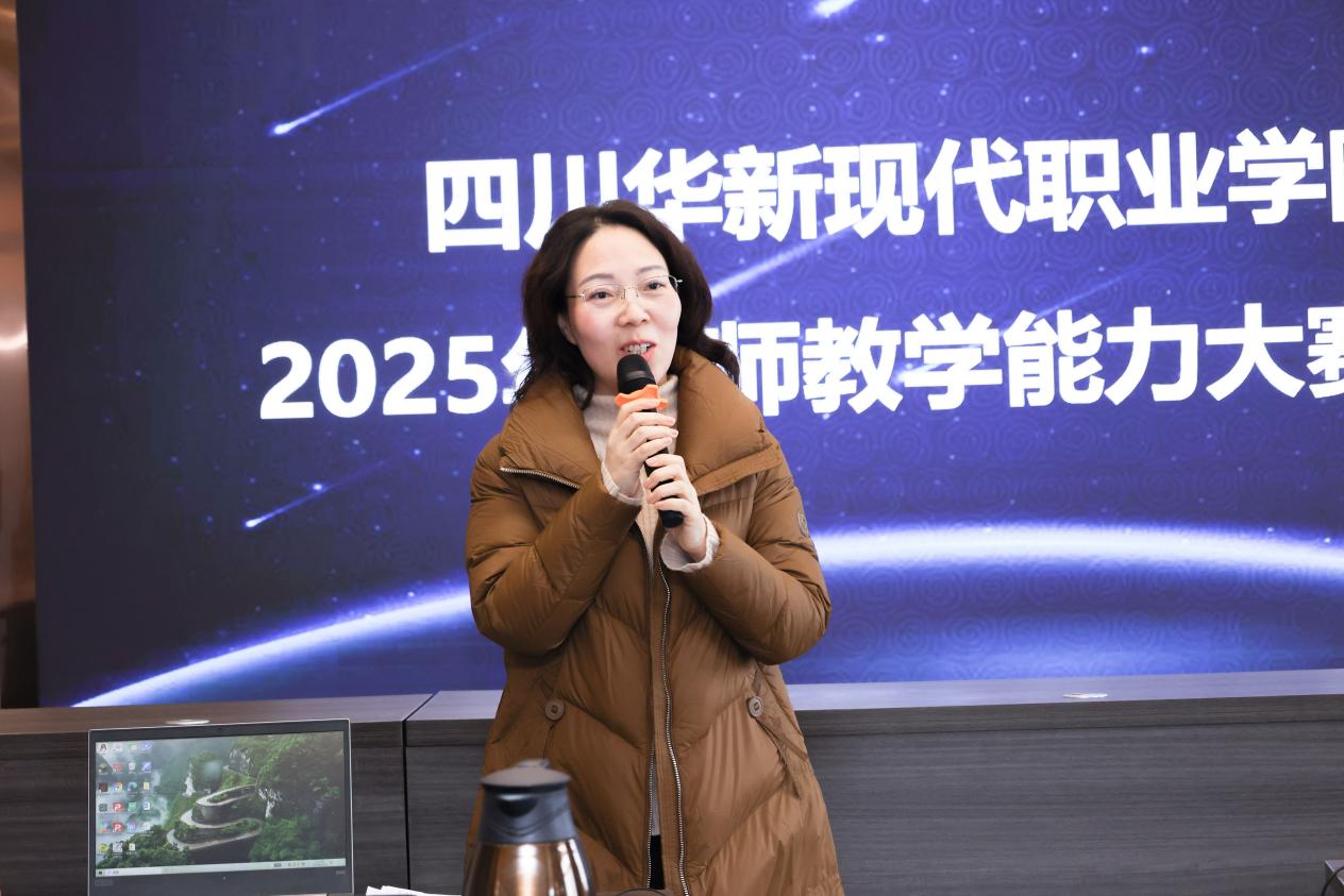 12月10日,四川华新现代职业学院2025年教师教学能力大赛决赛隆重举行,四川交通职业技术学院原副院长王永莲、四川交通职业技术学院教务处副处长刘乙橙、成都市技师学院雷朝晖教授担任决赛评委,学院副院长翁艳、教务处副处长薛鋆及专兼职教师观摩了比赛。