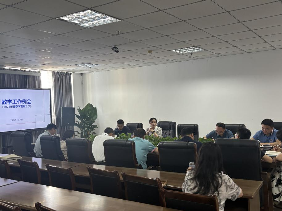 5月26日上午,华新职院召开2025年春季学期第三次教学工作会议。学院副院长翁艳、教务处、各教学单位负责人及相关教师参加了会议。会议主要围绕学院专业建设、教学运行、教学质量管理以及学籍考务等各项业务展开。