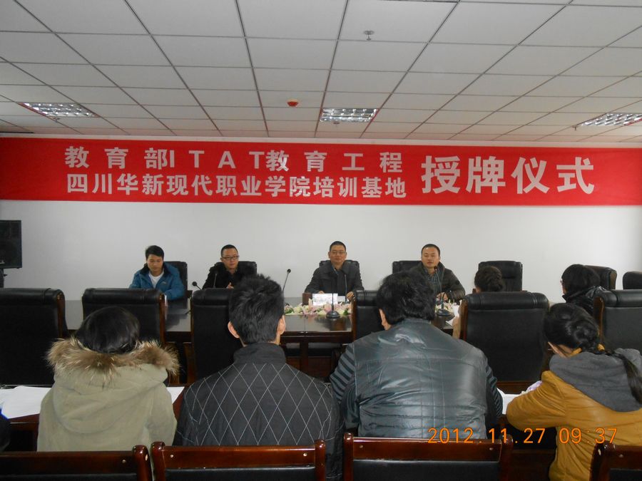 2012年11月27日,我院在综合楼623隆重举行教育部ITAT教育工程培训基地授牌仪式。教育部教育信息管理中心四川省推广中心主任赵雪昌,学院副院长周仲文、招就处、教务处、信息中心以及各系相关人员参加了授牌仪式。会议由教务处处长助理符又仁主持。