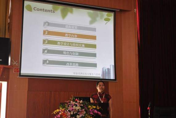 各位参赛教师教学设计思路独到,讲解声情并茂。旅游系王静老师课件制作精致、目标定位准确、内容清晰明了,深深打动了在场的每位评委和老师,得到了大家的高度评价;信息工程系邓先春老师、经济管理系徐建群老师等从教材、教学内容、教学方法和教学过程等几大模块进行了详细的解说,条理清楚,并能契合我院实际情况,具有很强的操作性,也获得了大家的认可。
